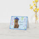 Envoyez des remerciements pour votre cadeau de remise de diplômes avec ce design qui met en vedette un joli diplômé du Labrador Retriever au chocolat, portant un mortier au milieu d'un déluge de confettis.