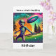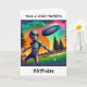 Alien jouant au disc golf dans les bois et les montagnes. Disque d'art amusant carte d'anniversaire de golf à thème avec beaucoup de puns amusants.