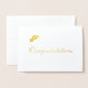 Le chapeau de diplôme et le mot "Félicitations" en feuille d'or sont devant la carte. À l'intérieur, vous pouvez personnaliser votre message avec le nom du diplômé et votre nom. Le texte peut être édité mais dit actuellement : "Votre diplôme est une réussite stupéfiante. Que vos rêves d'aujourd'hui soient vos réalités de demain.'