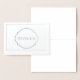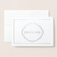 Real Silver Foil Cette carte de note de remerciement est affichée en blanc avec un nom d'échantillon et bordure de bordure et d'impression d'accent dans un vrai papier argenté. Customisez cette carte et changez l'exemple de texte à vôtre avec ce modèle ou achetez comme indiqué.