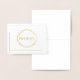 Real Gold Foil Thank You Note Card est montré en blanc avec un nom d'échantillon et un bordé de bordure et imprimé d'accent en papier or réel. Customisez cette carte et changez l'exemple de texte à vôtre avec ce modèle ou achetez comme indiqué.