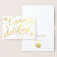 Cette carte de vacances en feuille d'or pour les entreprises et les entreprises dispose d'une typographie de script moderne en feuille qui dit "Happy Holidays" accentué par des flocons de neige en feuille de papier. Ci-dessous est le nom de votre entreprise à personnaliser. À l'intérieur de la carte est un salut en faux or avec votre signature et une image logo que vous pouvez customiser à votre propre. Conçu par l'artiste ©Susan Coffey.