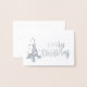 Carte Dorée Joyeux Noël arbre argent script de calligraphie