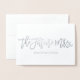 Une façon amusante et créative de faire savoir à tout le monde que vous êtes fiancé. Ce design présente la phrase "la future Mme" avec un petit cœur à la fin, écrite dans un script moderne en véritable feuille d'aluminium. L'intérieur est laissé vierge pour que vous puissiez ajouter votre message personnalisé.