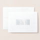 Foil Carte de remerciements Cette carte est présentée en papier stock blanc mat avec une impression de Merci stylisée en papier argent réel. Ajoutez votre propre salutation à l'intérieur si vous le désirez. 5" x 7" Taille Customisez cette carte ou achetez tel quel.