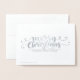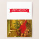 Carte de Noël avec design de typographie sophistiqué. L'avant et l'arrière sont assortis d'une impression de papier peint en argent. À l'intérieur de la carte, il est l'impression couleur pleine. Il y a une image vintage : .une petite fille en manteau rouge tient un arbre et sonne la cloche de la porte. Elle est pieds nus. Un design hongrois de 1896.