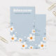 Carte d'affichage de bijoux avec fraise blanche fleurie sur un arrière - plan bleu poussiéreux et votre nom de société ou de conception dans une police rétro.