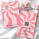 Carte d'affichage de bijoux à oreille rose avec un coup de soleil rétro, ondulé et tordu avec votre logo. Texte personnalisable et code QR au verso. Toutes les couleurs peuvent être ajustées dans l'outil de conception.