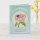 Cette nouvelle carte de félicitations pour bébé présente une fée douce et bébé dormant dans une fleur rose. Une version à peau légère est également disponible.