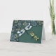 Cette carte d'anniversaire de libellules a un arrière - plan Calico et tissé et deux libellules d'aquarelle.