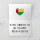 Le beau design comprend des ballons heureux et des bandes-tiques avec les mots "Joyeux anniversaire", recouverts des couleurs du drapeau de la Guinée-Bissau. Le design est fini avec le coeur dans les couleurs du drapeau de la Guinée-Bissau et le message d'anniversaire. Les éléments sont entièrement personnalisables à l'aide de la fonction "Customisez-le !". Cette carte d'anniversaire colorée est le cadeau parfait pour votre ami de Guinée-Bissau. © PaysDuMonde