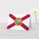 Ce dessin présente le drapeau de l'État américain de Floride, situé dans le sud-est des États-Unis. C'est l'un des États les plus peuplés des États-Unis et l'un des plus riches. L'explorateur espagnol Juan Ponce de León a baptisé la région "la Forida" (terre des fleurs) en y atterrant en 1513. Le drapeau est constitué d'un saut rouge sur un arrière - plan blanc, le sceau d'État étant superposé au milieu; il a été adopté pour la première fois en 1868 comme drapeau d'État de la Floride.