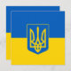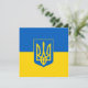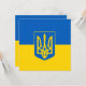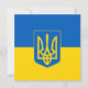 Carte plate avec le drapeau de l'Ukraine, un drapeau bleu et jaune avec les armoiries ukrainiennes (emblème) avec un trident au centre