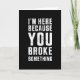C'est le cadeau idéal de Programmer pour les développeurs avec un sens de l'humour. "Je suis ici parce que vous avez cassé quelque chose" est déclaré en haut comme une partie amusante de la vie des travailleurs du support informatique ou des développeurs de logiciels.