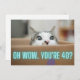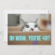 Drôle carte d'anniversaire plat pour les amoureux de les chats montre la photo d'un chat curieux regardant en haut de la boîte de carton avec le texte néon qui dit "Oh wow. Vous avez 40 ans ?" Texte "happy anniversaire" personnalisable sur le dos