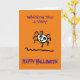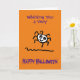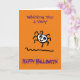 Dessin animé montrant une araignée mignonne et heureuse. La carte indique 'Je vous souhaite un très joyeux Halloween' sur le devant et à l'intérieur 'Passez une excellente soirée'. Personnalisez facilement cette carte en modifiant l'un des textes du modèle.