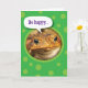 Ce crapaud à l'allure grincheuse qui regarde à l'extérieur d'une carte verte avec des pois dit, "Soyez heureux que vous n'ayez pas encore croqué." Quelque chose que nous voulons tous entendre lors de nos anniversaires !