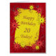 Carte de 20e anniversaire. Une carte d'anniversaire brillante aux étoiles rouges et jaunes. Une carte animée pour les jeunes de coeur. Voir tous les âges et relations dans mon magasin : http://www.zazzle.com/eggznbeenz