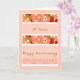 Ce design du 37ème anniversaire a un arrière - plan de pêche avec des bordures et des fleurs. Le recto de la carte a "37 Ans", "Joyeux Anniversaire". Les fleurs sur la carte sont des objets achetés.