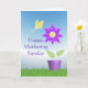 Fleur violette et papillon jaune avec texte personnalisable "Happy Mothering Sunday". L'intérieur est vide.