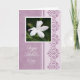 Carte du jour de mère dans le pourpre avec une photographie d'une fleur blanche du jardin et d'une conception élégante.