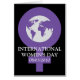 Carte pourpre du monde encerclée par le symbole de venus pour représenter le jour de la femme internationale. Texte de personnaliser et couleur d'arrière - plan.