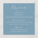Ajoutez une touche fraîche et élégante à vos tables d'accueil avec cette carte de menu mariage de carré bleu poussiéreux. Doté d'une typographie romantique et de tons saisonniers doux, ce design est parfait pour les mariages printaniers et les fêtes de jardin. Customisez avec vos propres détails de repas pour créer un cadre magnifique et cohésif.
