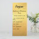 Programme et carte menu. Personnalisez et ajoutez un nom/événement, une date et un menu. Un arrière - plan à l'allure fausse or, du texte noir.