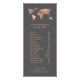 Ces élégants menus de tarifs sur le thème du voyage pour les services présentent une carte du monde de l'or faux rose sur un arrière - plan gris fumée moderne.