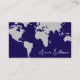 Un carte de visite pour un agent de voyage, ou tout autre professionnel... avec l'image d'une carte graphique du monde sur un arrière - plan bleu foncé... avec le nom imprimé à la main.