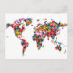 Carte du monde réalisée à partir de cœurs semi-transparents colorés se chevauchant, sur fond blanc