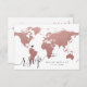 Notre élégante carte de réponse de carte du monde en or rose avec enveloppe est un moyen parfait de compléter votre thème de voyage pour votre mariage ou votre suite d'invitation de fête. Le cœur sur le devant est mobile pour marquer votre destination. Le dos comporte un espace pour des sélections de repas facultatives et un texte d'option de réponse créative. Adorable avec des invitations de passeport et de carte d'embarquement ou notre invitation de carte du monde assortie.