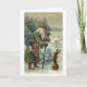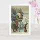 Cette carte de Noël vintage a été imprimée à l'origine en 1905. Elle représente un lièvre adorable à qui le Père Noël demande son chemin.