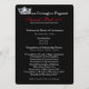 Créée sur 110 lb. stock de carte semi-brillante pour une impression photo optimale, cette carte de programme déjeuner classique recto verso vous attend pour personnaliser avec vos propres informations. A des angles arrondis pour un look élégant et tout Noir pour une liaison élégante. Le texte est fait en argent clair avec la couleur de la légende rouge et dispose d'une impression de couronne brillante en argent en haut à gauche. Dos a du texte et une couronne plus petite près du fond. Une touche sympathique pour votre brunch primé aussi. Choisissez des styles et des couleurs de texte, etc. Doit customiser les deux côtés de cet élément.
