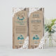 Bois rustique avec dentelle blanche et bouquet floral bleu respirant pour bébé en pot de mason avec burlap, dentelle, et tailles de ficelle sur le texte à l'allure lin arrière - plan et le coeur gravé avec programme de mariage de style campagnard monogramme.