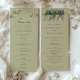 Cette élégante carte de programme de cérémonie de mariage présente un superbe design Art Nouveau avec des volières complexes et des motifs floraux. L'avant de la carte accueille les hôtes avec des perroquets magnifiquement illustrés et des fleurs délicates, dressés contre un arrière - plan vert sage et doux. Il décrit l'horaire des cérémonies et donne une chronologie détaillée des événements de la journée spéciale. Le verso de la carte indique la fête de mariage, avec des illustrations florales assorties encadrant le texte. Idéal pour un mariage de jardin ou de nature, cette carte programme allie élégance intemporelle et beauté artistique, assurant à vos invités une bonne connaissance et un charme certain du design.