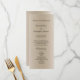 Une belle champagne colorée avec une carte de programme de mariage en script noir. Ajoutez l'ordre de la cérémonie et vos noms sur le devant. Au fond, il y a de l'espace pour les noms des parties nuptiales.