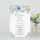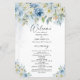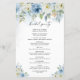 Carte du programme de mariage aux fleurs bleu et blanc Aquarelle.