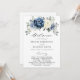 Faire-part de mariage floral bleu roux avec élégant bouquet de bleu marine, bleu royal, blanc, or, ivoire champagne, rose couleur rousse, bourgeons de fleurs ranunculus et sauge vert eucalyptus feuilles et élégant bouquet aquarelle. Veuillez me contacter pour toute aide sur la personnalisation ou si vous avez besoin d'un autre produit avec ce design.