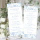 Elégante carte de programme de mariage classique d'inspiration chinoise en porcelaine bleue avec motif floral bleu élégant.
