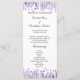 Une belle carte de programme de mariage floral lavande. Ajoutez l'ordre de la cérémonie et vos noms sur le devant. Au fond, il y a de l'espace pour les noms des parties nuptiales.