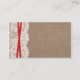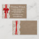 La collection rustique de mariage d'arc rouge est un design époustouflant avec un joli arrière - plan rustique effet burlap avec un cadre romantique vintage effet dentelle blanche et un arc rouge étonnant. Ces cartes d'insertion de site web mariage peuvent être personnalisées pour votre occasion spéciale et feraient l'insert parfait assorti pour toute suite de mariage rustique, douche nuptiale, fête de fiançailles, fête d'anniversaire et bien plus encore. Ces cartes peuvent être utilisées pour créer des cartes de détail, des cartes d'information pour les clients, des cartes d'hébergement, des cartes de direction, des cartes d'enregistrement des cadeaux ou des cartes de puits de souhaits, ainsi que des cartes de cérémonie et de réception. *Veuillez noter que Zazzle ne vend que des cartes imprimées afin que ces cartes n'aient pas de matériel réel pour le burlap, la dentelle, le ruban ou l'arc.