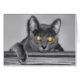Une photo qui regarde droit devant un chat gris aux yeux dorés. Modifié avec une coloration sélective pour souligner les yeux fascinants.