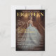 Vous cherchez une façon séduisante de présenter votre jalon? Cette carte de 18ème anniversaire de style magazine présente un gros titre en or audacieux avec une maquette d'une robe bleue poussiéreuse dressée contre un escalier doré luxueux orné d'or. Veuillez noter que la photo et l'arrière - plan sont des maquettes-maquettes, vous pouvez les remplacer par votre propre image pour créer un look vraiment personnel. Parfait pour les débuts, quinceañeras ou les douces années soixante, cet aménagement élégant est idéal pour la salle de bal, l'hôtel ou les célébrations formelles. Avec son style sophistiqué et son format prêt à photographier, il ressemble à la couverture d'un magazine haut de gamme et donne le décor pour une fête inoubliable.