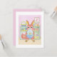 This adorable bunny holding an Easter egg was drawn with a little kid in mind. In her room, there's a shelf filled with the Easter eggs she’s collected. Doesn’t she look happy standing before all those colorful patterns? This card is perfect for your little bunny.