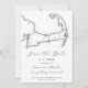 Donnez le ton à votre mariage Eastham avec ce moderne noir et blanc Save the Date avec une carte élégante de Cape Cod sur le devant et une photo personnalisable sur le dos. Parfait pour les mariages à First Encounter Beach, Coast Guard Beach ou The Chapel in the Pines, ce design associe style et commodité, offrant une adressage d'enveloppe gratuite. Annoncez votre journée spéciale dans un charme côtier sans effort ! Oeuvre de la carte côtière Designs.