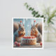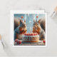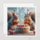 Une très jolie illustration d'écureuils qui mangent un gâteau d'anniversaire et portent un casquette de fête. C'est la carte idéale pour les amateurs d'écureuils et les amateurs de petites bêtes ainsi que les amoureux de la nature. La carte peut être entièrement modifiée et personnalisée selon vos besoins.