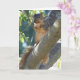 La photographie d'un animal de la nature, d'un écureuil en gros plan dans un arbre, et un salut composent cette carte.