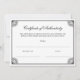 Elégant certificat d'authenticité dans un design élégant intemporel avec un cadre décoratif imprimé en noir entourant le texte élégant. Certificat d'authenticité en noir et blanc pour votre oeuvre où vous pouvez ajouter votre nom, écrire le titre, signé par date, et signé par qui. Assurez-vous que vos clients et clients savent par qui votre oeuvre est créée avec ce certificat d'authenticité intemporel dans un design classique noir et blanc.