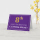 L'avant de cette carte de voeux élégante et respectable à thème d'anniversaire comporte un grand numéro ordinal "8e" ayant une apparence imitation/faux or, le message "HAPPY 8TH BIRTHDAY", un nom de destinataire personnalisé, et un motif de frontière composé de lignes fines, sur un arrière - plan de couleur violette. L'intérieur comporte un message de voeux d'anniversaire modifiable, ou peut-être pourrait-il être effacé et laissé vide si un message doit être écrit à la main à la place. Une carte de voeux d’anniversaire personnalisée comme celle-ci pourrait être envoyée pour célébrer le huitième anniversaire de quelqu’un. [~Z0000484]